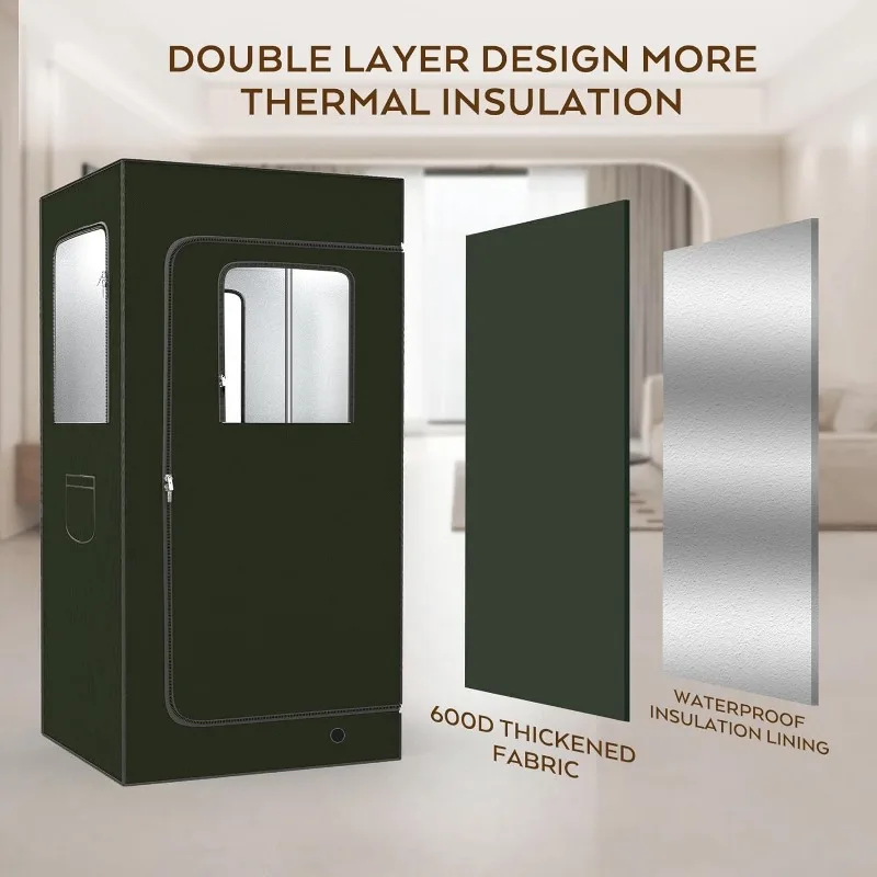 - 【600D MATERIAL & STAINLESS STEEL FRAME】- The exterior of the home sauna tent is made of thickened 600D fabric with high heat insulation, can effectively prevent heat loss. The home sauna tent interior with waterproof insulation material, easy to wipe, dry, clean and comfortable. The bottom of the sauna tent is leak-proof with hot air glue, so that the heat lasts longer. High quality stainless steel pipe, rust resistant and durable, strong stability, not easy to deformation, long service life.